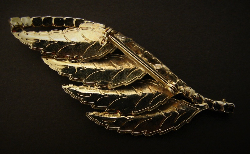 FEATHER LEAF RHINESTONE BROOCH $46