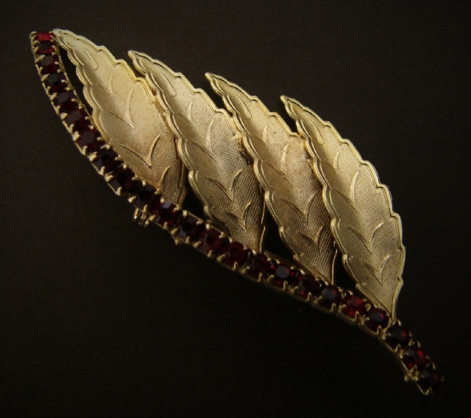 LEAVES AND FAUX RUBY STONES BROOCH $29